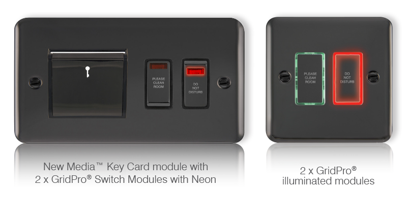Hotel Accessory plate - 2 gang gridpro® frontplate with twin new media™ aperture