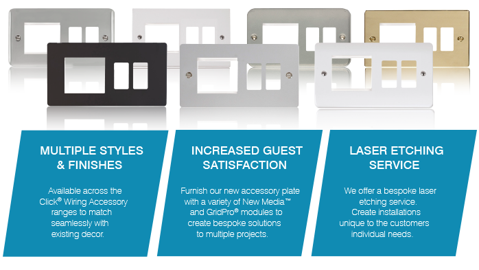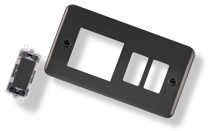 Our new accessory plate is available across all of our ranges that combines a Twin Euro Module size Aperture (50mm x 50mm) with 2 x GridPro® Apertures.