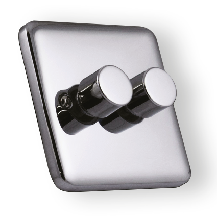 The small size of the new dimmer module means they can be placed above/below each other on multi-tier plates. They will fit into 25mm back boxes when used on raised plates and into 35mm back boxes when used on flat plates.